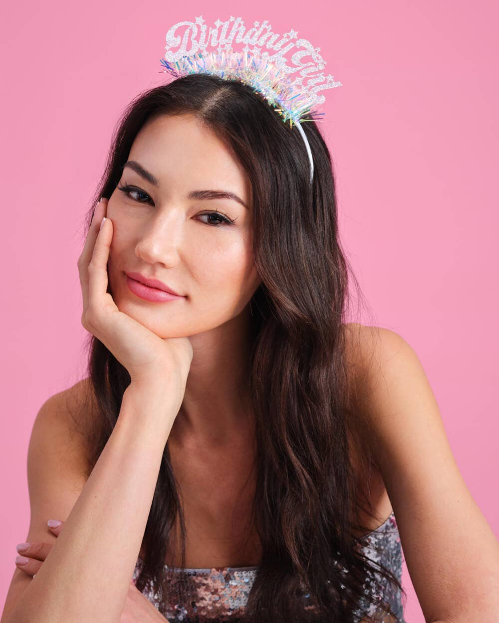 Pair this birthday girl headband with balloons, banners, and an iridescent fringe backdrop to build the ultimate bi