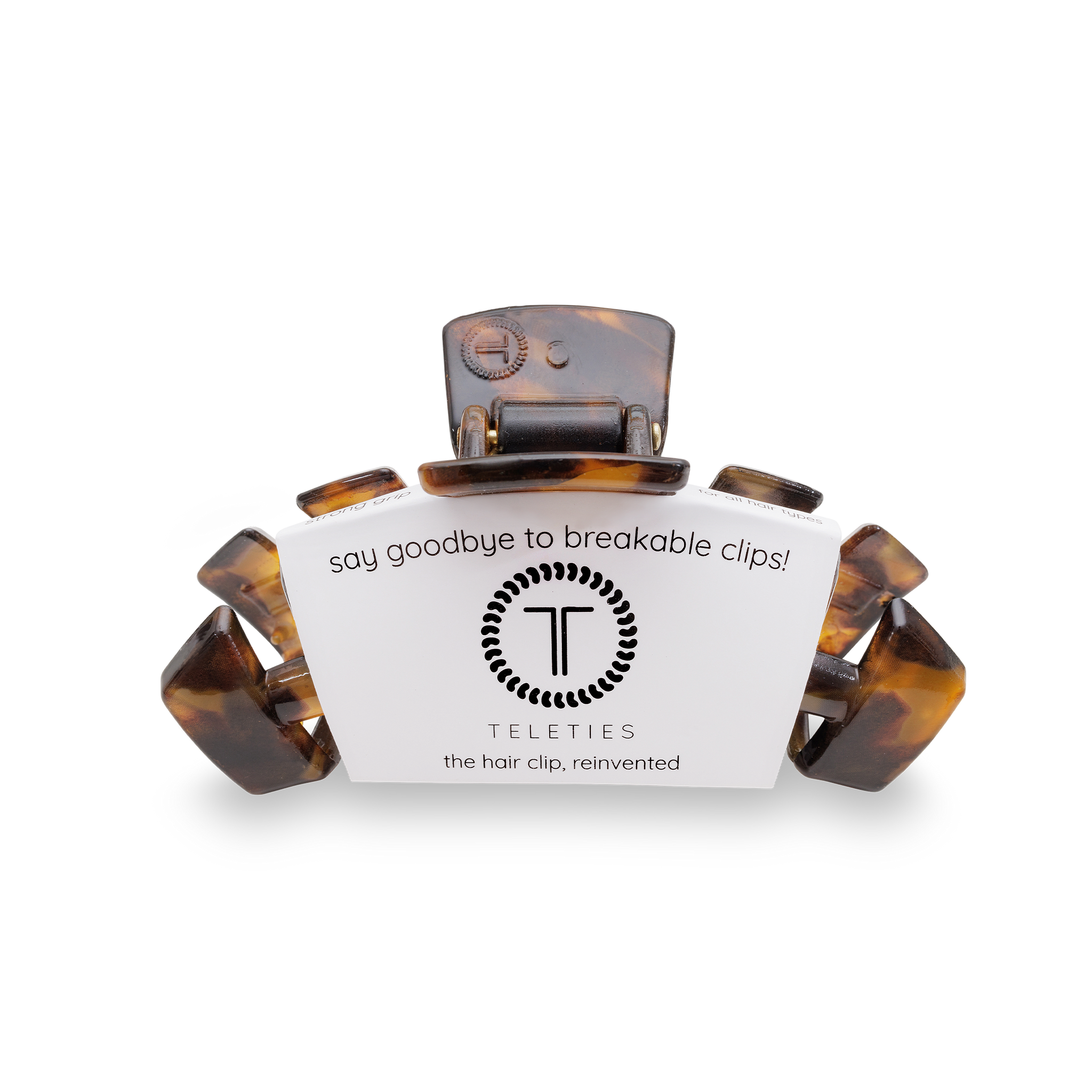 Say goodbye to breakable clips! We have perfected the hair tie and now have re-invented the clip. Each hair clip has bendable teeth that take back to shape, they work on all hair types and have a strong hold. Hold your hair and enhance your style with the new TELETIES Clip!